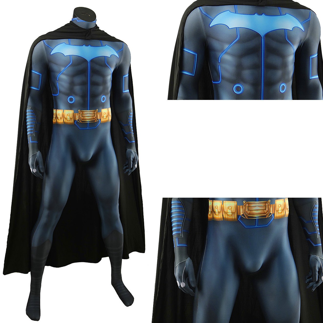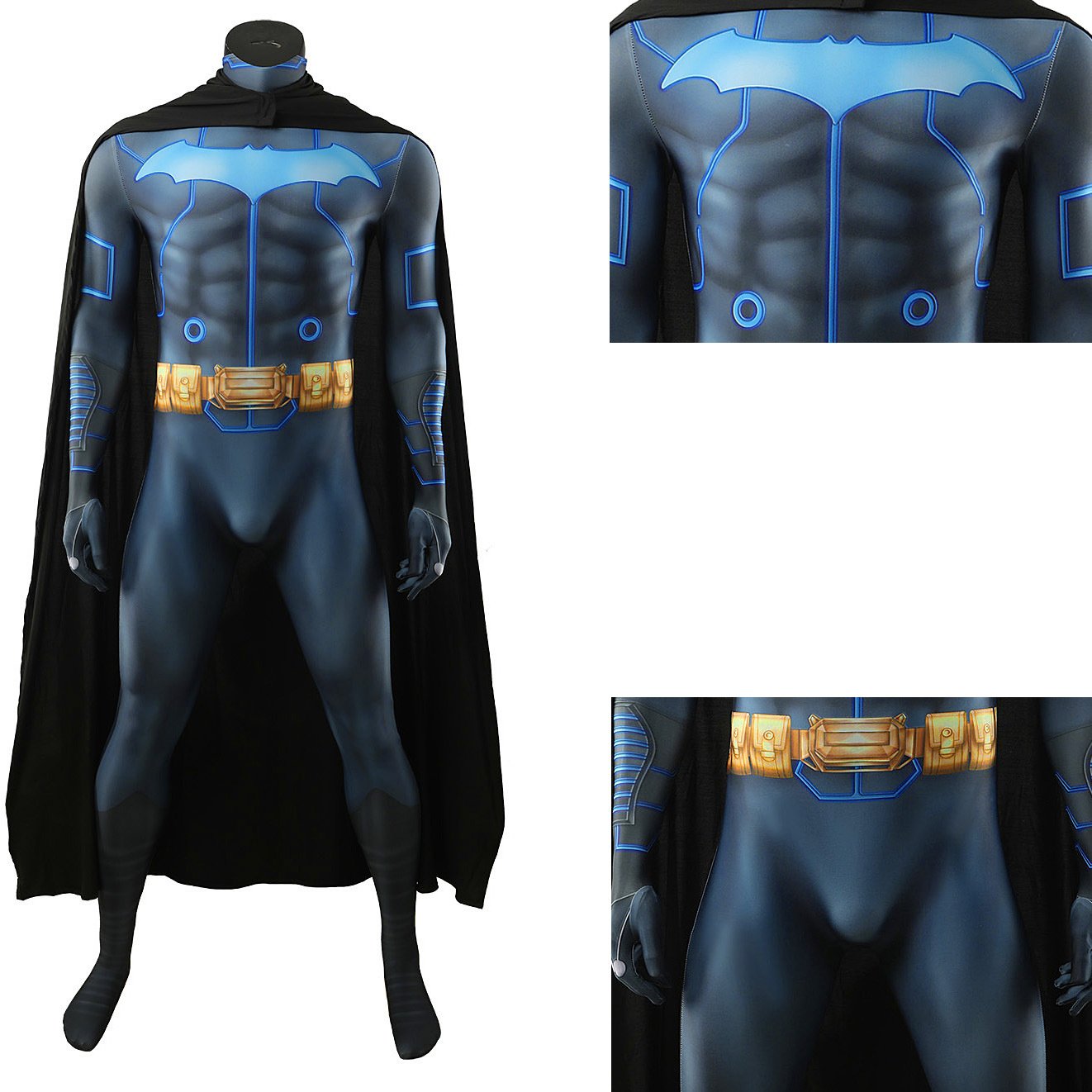 Batman and Mobius Chair Cosplay Costume DC Superhero Jumpsuit Cloak